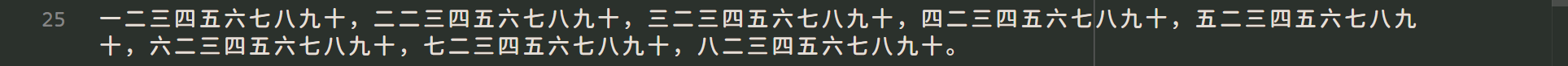 可以看到,有十个汉字还在第一行的右边,需要拖动水平滚动条才能看见。